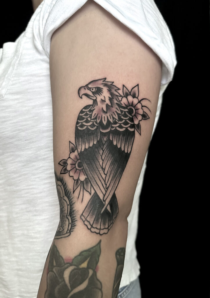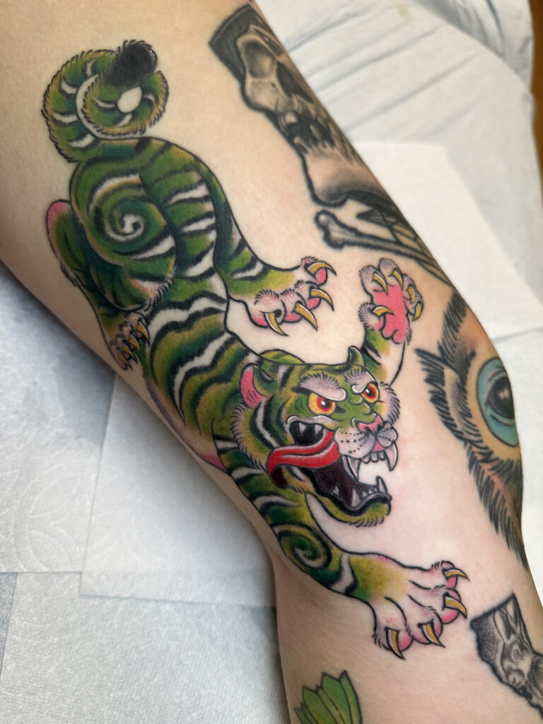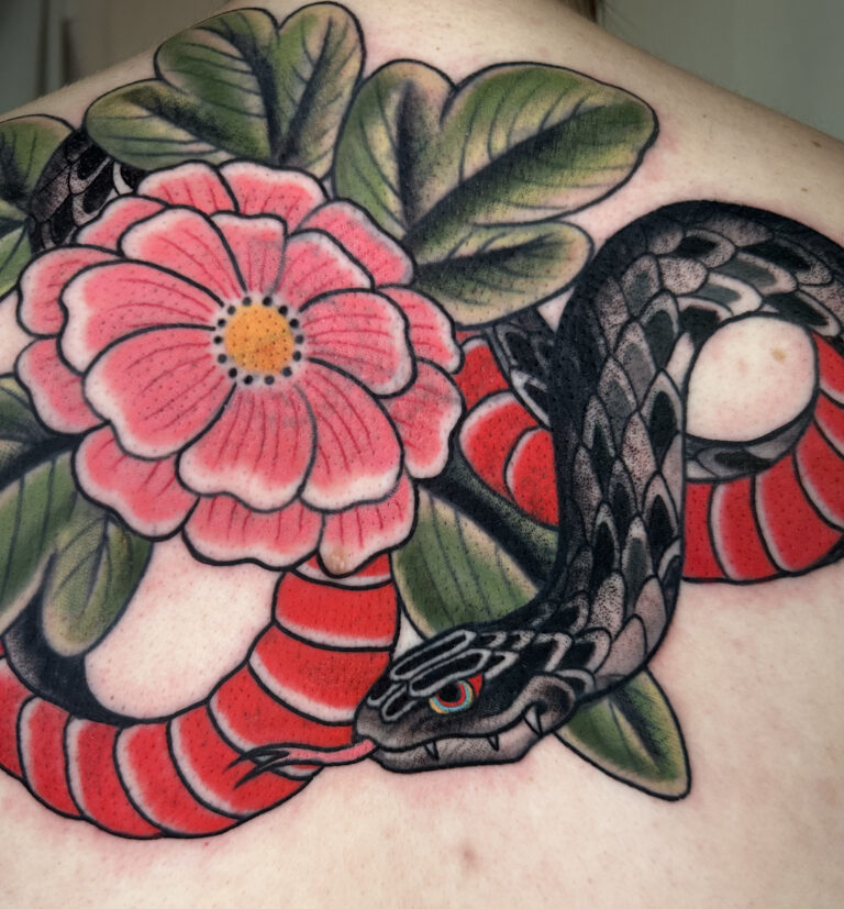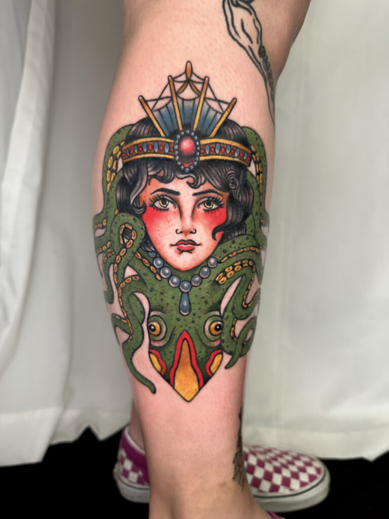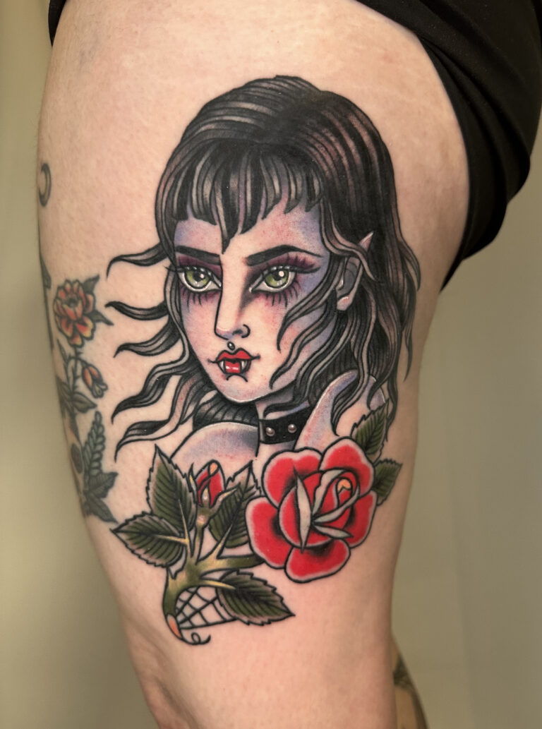 Though proficient in most styles, her favorites are neo-traditional, American traditional, illustrative, and Japanese.