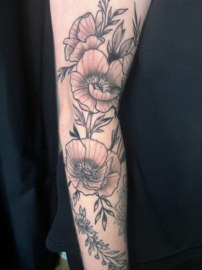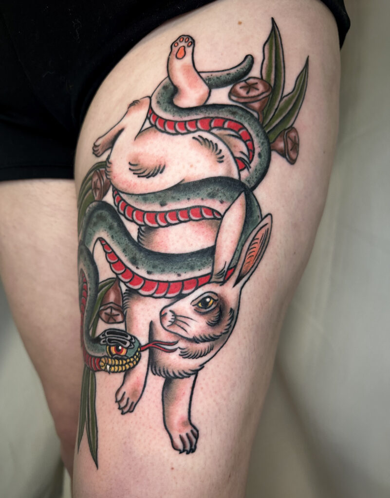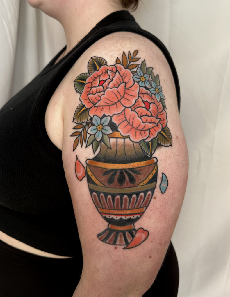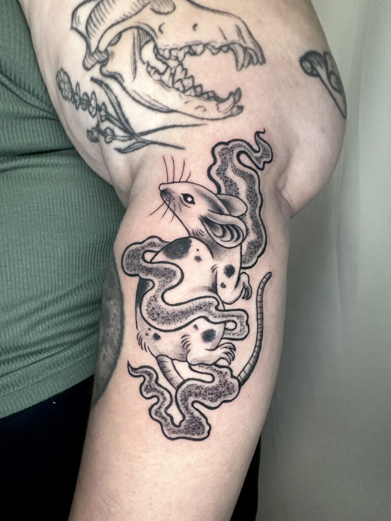 Though proficient in most styles, her favorites are neo-traditional, American traditional, illustrative, and Japanese.