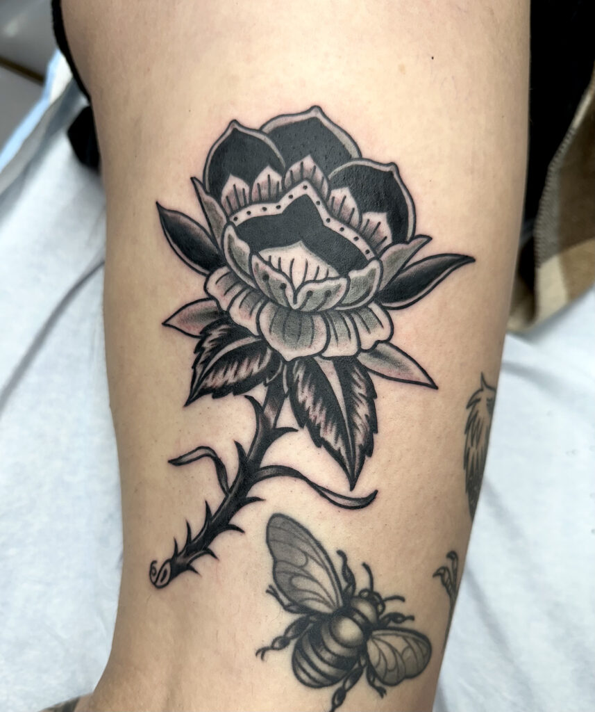 Dedicated to the art of tattooing, she invests every day in honing her skills and perfecting her craft.